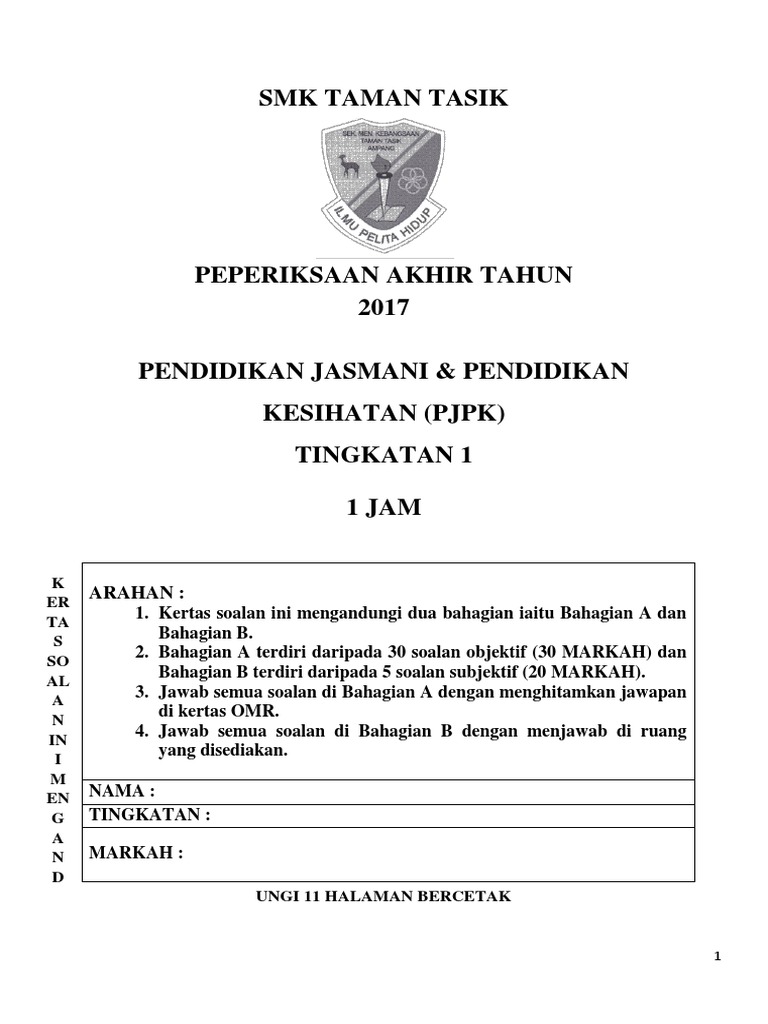 Soalan Peperiksaan Akhir Tahun Darjah 3 Pendidikan Kesihatan 2021-10-16T153400-0700 Rating. PEPERIKSAAN AKHIR TAHUN PENDIDIKAN JASMANI KESIHATAN TAHUN 3. CONTOH KERTAS SOALAN PJK.